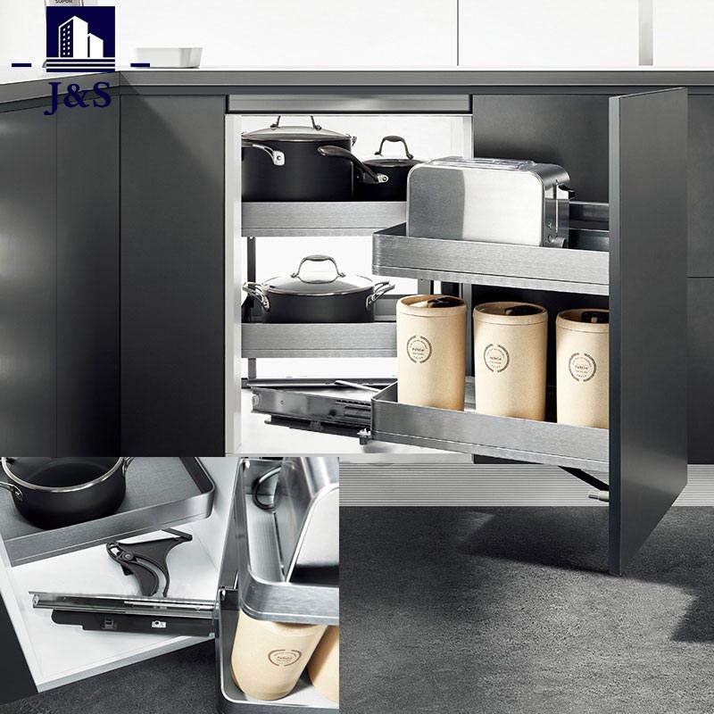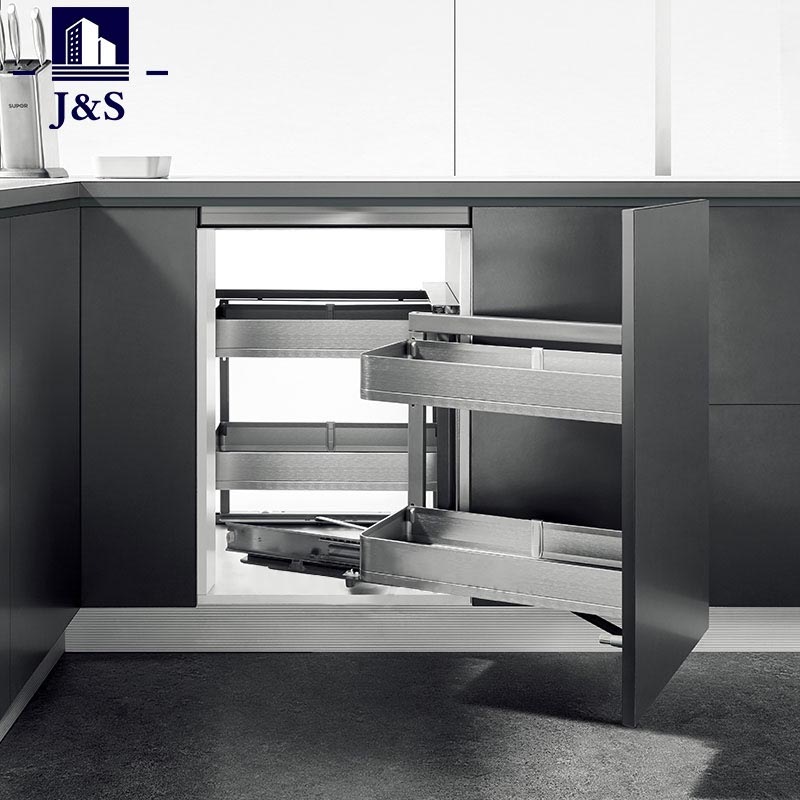 Waarom moeten we Magic Corner Draaibare Plank Keukenkast Uittrekmand Draaimand in uw keuken installeren? Voeg op de normale scheidingswand van de kast een draaibare draaitafel toe, zodat u, zelfs als de kast diep is, de binnenste items kunt draaien en bereiken, en u zich geen zorgen hoeft te maken dat de items worden weggesleept.